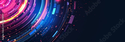 © neirfy, Naklejka premium Circular Tech Graphic. Abstract colorful circular lines on dark blue background