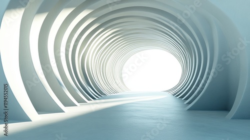 © Barracuda Atelier, Naklejka premium Circular tunnel, bright exit, abstract architecture, 3D render, design