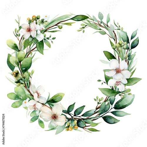 © Cook, Naklejka premium Circular watercolor wreath of flowers and leaves , artistic and decorative.