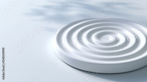 Obraz premium Circular white object with ripples rests on smooth, light surface. Soft...