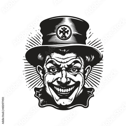 © Artcuboy, Fototapeta premium circus clown, vintage logo line art concept black and white color, hand drawn illustration