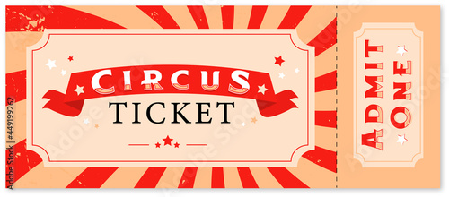 Fototapeta premium Circus ticket with tent and inscriptions on white background