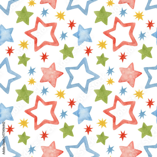 © KiraKonoshenko, Obraz premium Circus watercolor seamless pattern for children.