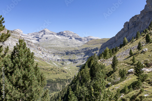 Fototapeta premium Cirque de Soaso with Cilindro de Marbore, Monte Perdido and Soum de Ramond (left to right) in Ordesa y Monte Perdido National Park. Huesca, Aragon, Spain.