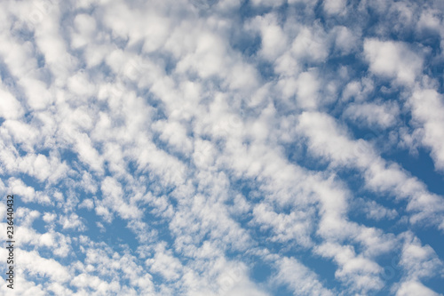 © Juhku, Obraz premium Cirrocumulus clouds against blue sky background pattern