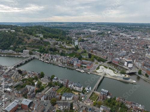 © Sepia100, Obraz premium Citadel of Namur above the Sambre river historic ladnmark in Namur, Belgium, city view. Monument.