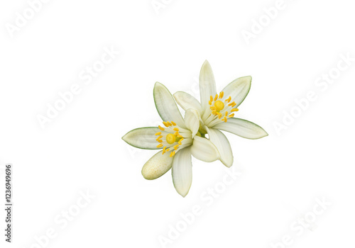 © Laki, Naklejka premium Citrus flower with green leaves isolated on White background