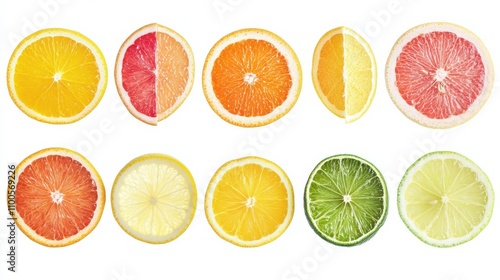 Obraz premium citrus slice isolated on white background, pomelo, grapefruit, orange, lemon, lime, kumquat