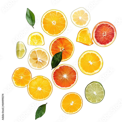 Fototapeta premium Citrus slices, vibrant colors, various types
