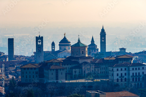Fototapeta premium Citta Alta view from Castello di San Vigilio in Bergamo City