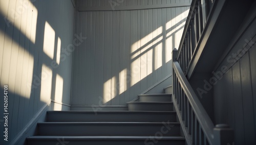 © AbstractAI, Obraz premium City apartment featuring vintage beadboard walls and sunlight
