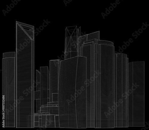 © Yurii Andreichyn, Obraz premium City architecture 3d illustration
