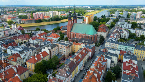 Naklejka premium city ​​architecture europe drone flyover old town Opole Poland