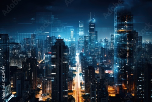 © Rawpixel.com, Fototapeta premium City architecture illuminated cityscape.