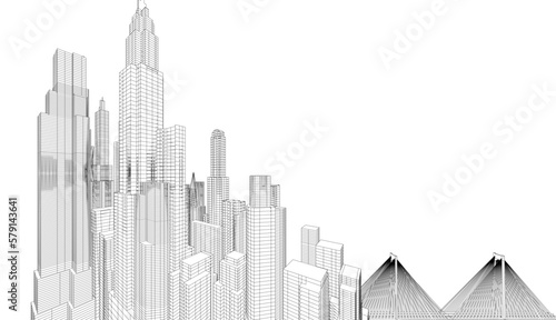 © Yurii Andreichyn, Fototapeta premium City architecture vector 3d illustration