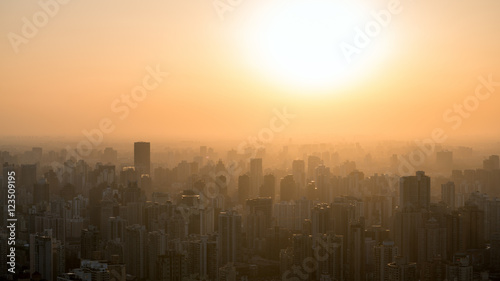 © YANG WEI CHEN , Fototapeta premium city at misty sunset.