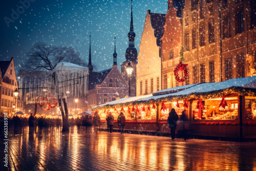 © chandlervid85, Fototapeta premium city at night with christmas decoration
