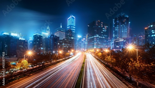 © Amli, Fototapeta premium city at night with lit streets and glowing traffic lights