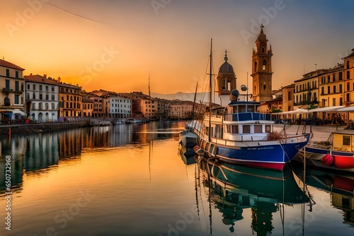 Naklejka premium city at sunset