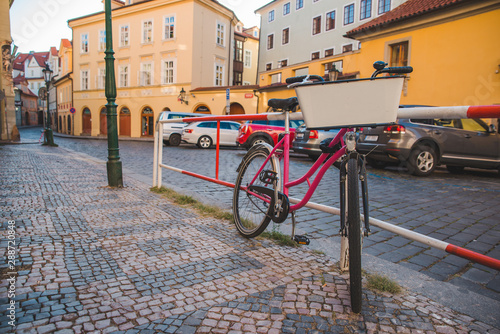 © phpetrunina14, Fototapeta premium city bike parked at roadside. ecology transport
