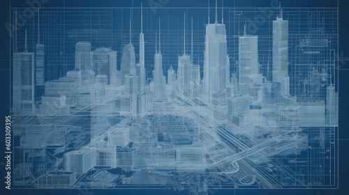 © AdriFerrer, Obraz premium City blueprints. Generative AI