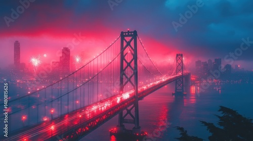© Get it, Fototapeta premium City bridge at night with fireworks