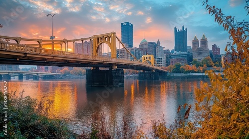 © xoan, Fototapeta premium City Bridge Sunrise Reflection