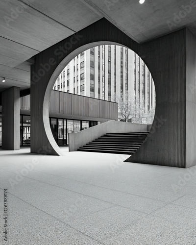 Fototapeta premium City building circular window stairs