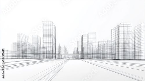 Fototapeta premium city, building, Modern, innovative, Wireframe style.