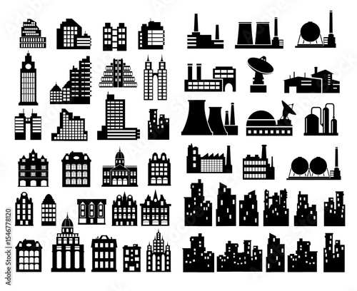 © AlexZel, Obraz premium City buildings and industrial factories icons representing urban landscape