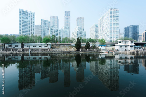 © H stock, Fototapeta premium City buildings are reflected on the river