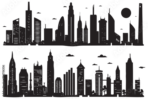 © shopone, Fototapeta premium City buildings silhouette vector illustration isolated