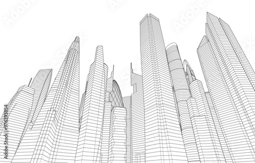 © Olha_And, Fototapeta premium City buildings sketch 3d rendering