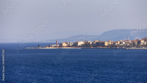 Fototapeta premium City by the Sea. Messina, Villa San Giovanni, Italy. Sunny Morning.
