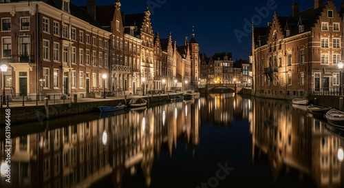 Obraz premium City canal at night with historic architecture and shimmering reflections