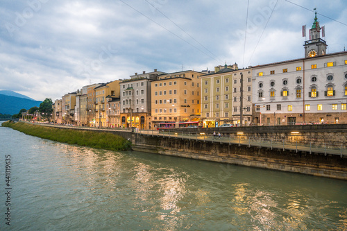 Obraz premium City center of Salzburg Rudolfskai Rathaus Salzach