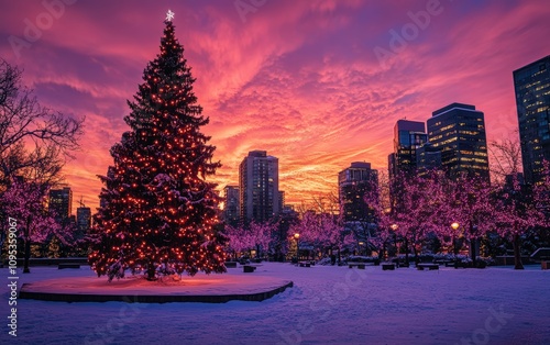 Obraz premium city christmas sunset