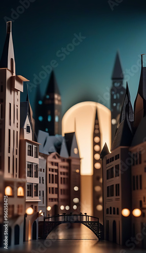 © Galeno, Naklejka premium city depicted paper art style intricate layered buildings