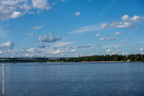 © константин константи, Naklejka premium city forest and river at sunset
