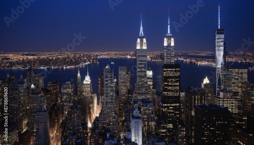 © wafi, Fototapeta premium city gotham skyline trade center gotham city new york city skyline new manhattan night york blue shanghai