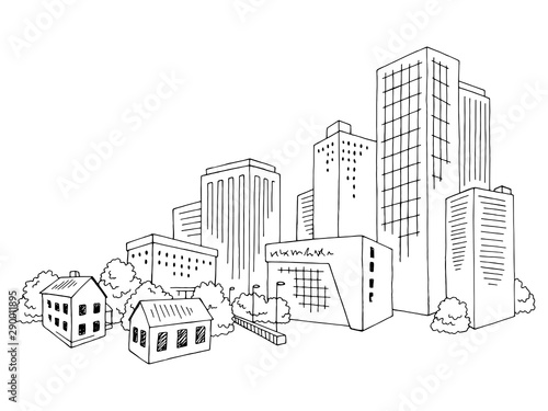 Obraz premium City graphic black white cityscape skyline sketch illustration vector