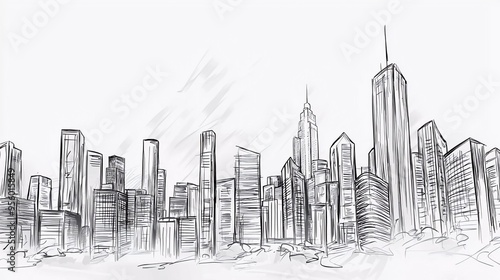 © Harjo, Fototapeta premium City graphic black white cityscape skyline sketch illustration vector