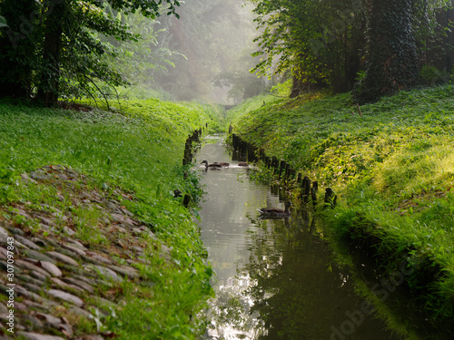 Fototapeta premium City green park stream wild ducks. Wolsztyn, Poland