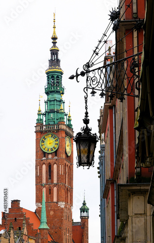 © Maryna Konoplytska, Fototapeta premium City Hall in Gdansk and winter snow-covered historic street
