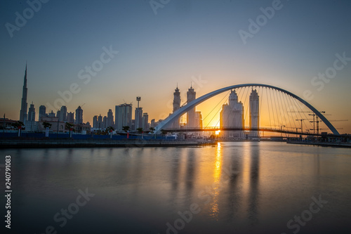 Naklejka premium city harbour bridge at sunrise in Dubai, UAE