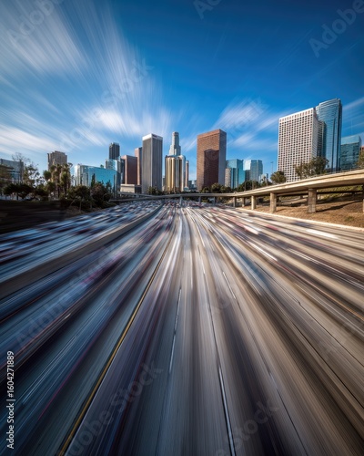 Fototapeta premium City highway, blurred motion, LA skyline