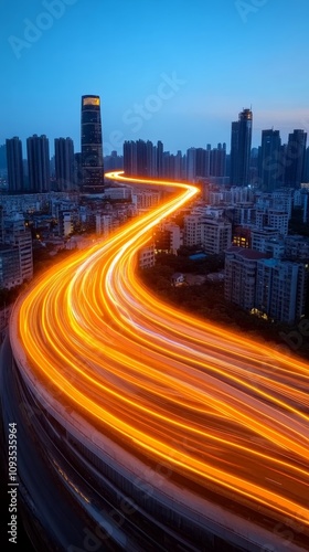 © Ai DreamscapesTH, Fototapeta premium City Highway Night Lights Urban Traffic Flow Speed Transportation