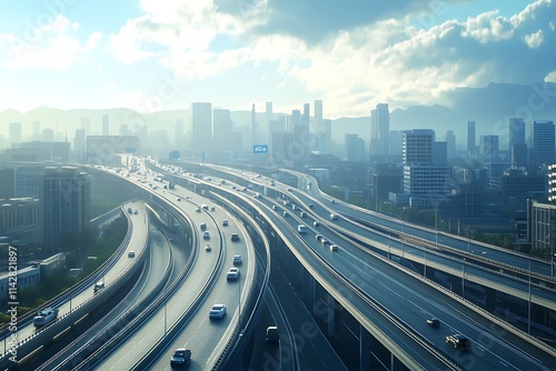 © projek, Fototapeta premium City Highway Overpass and Skyline