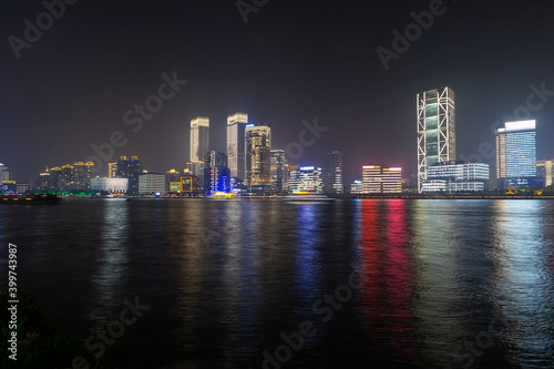 © Дмитрий Голуб, Fototapeta premium city in china is reflected in the river at night