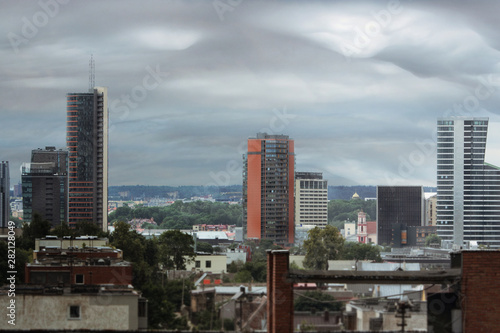 © Marija Crow, Fototapeta premium City landscape before thunderstorm with gray clouds